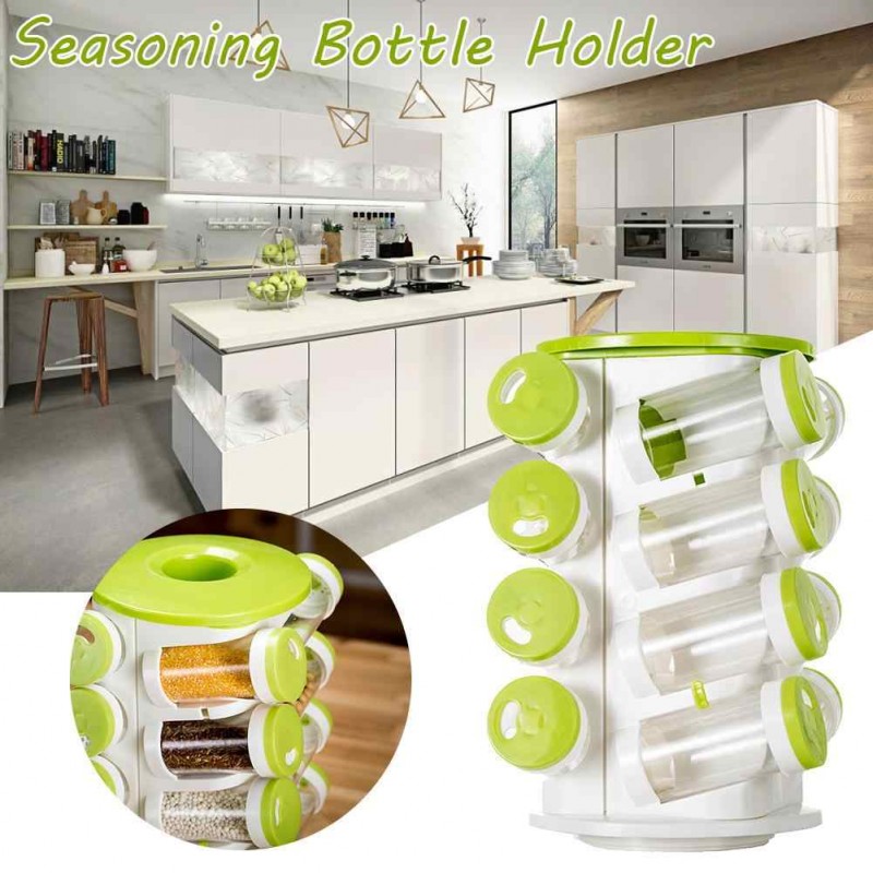 / 16 In 1 Spice Rack With Cutlery Holder Compact Rotating Revolving